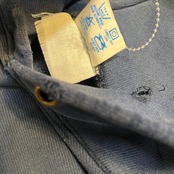 首元や袖口、裾にダメージあります。ポケット付近汚れあり。