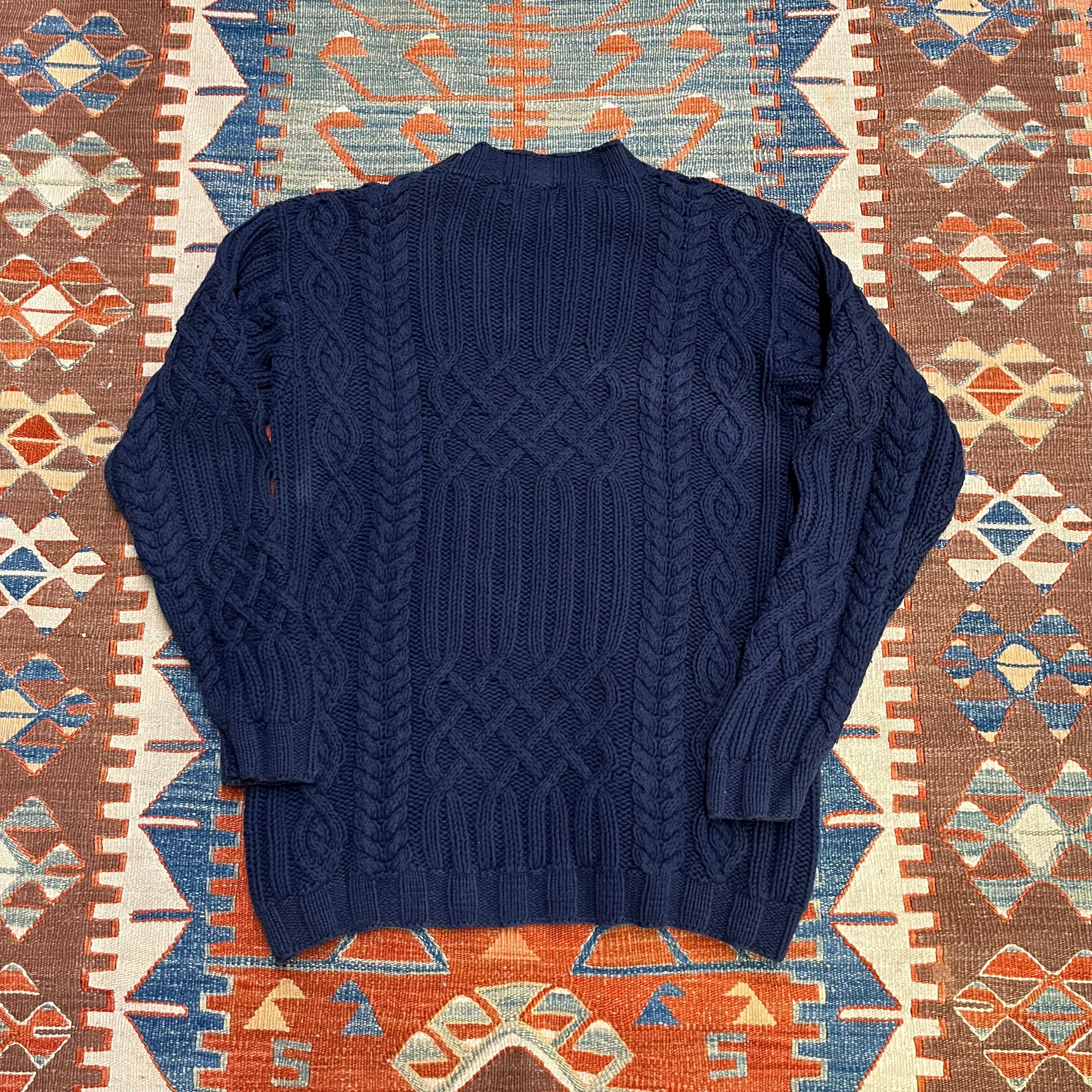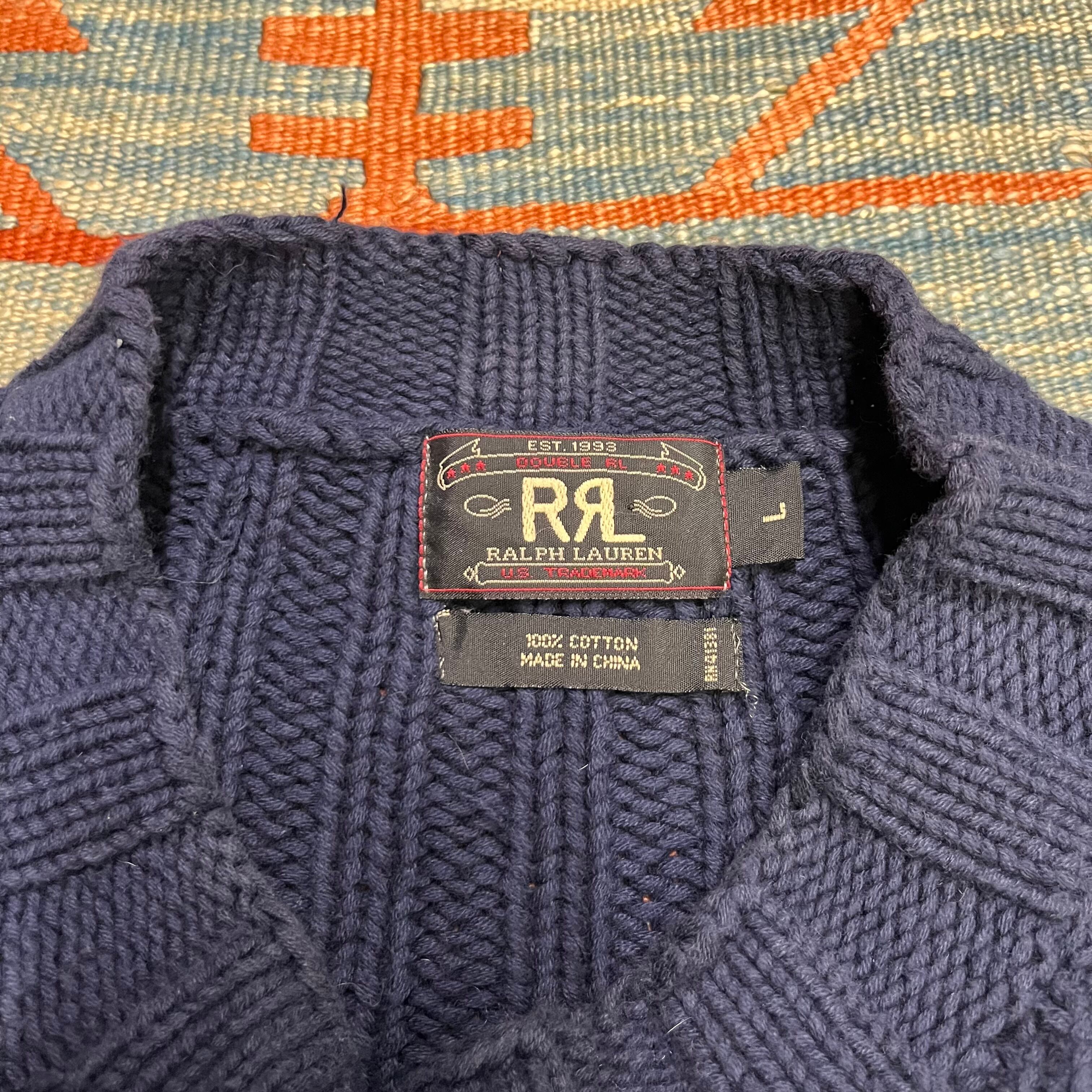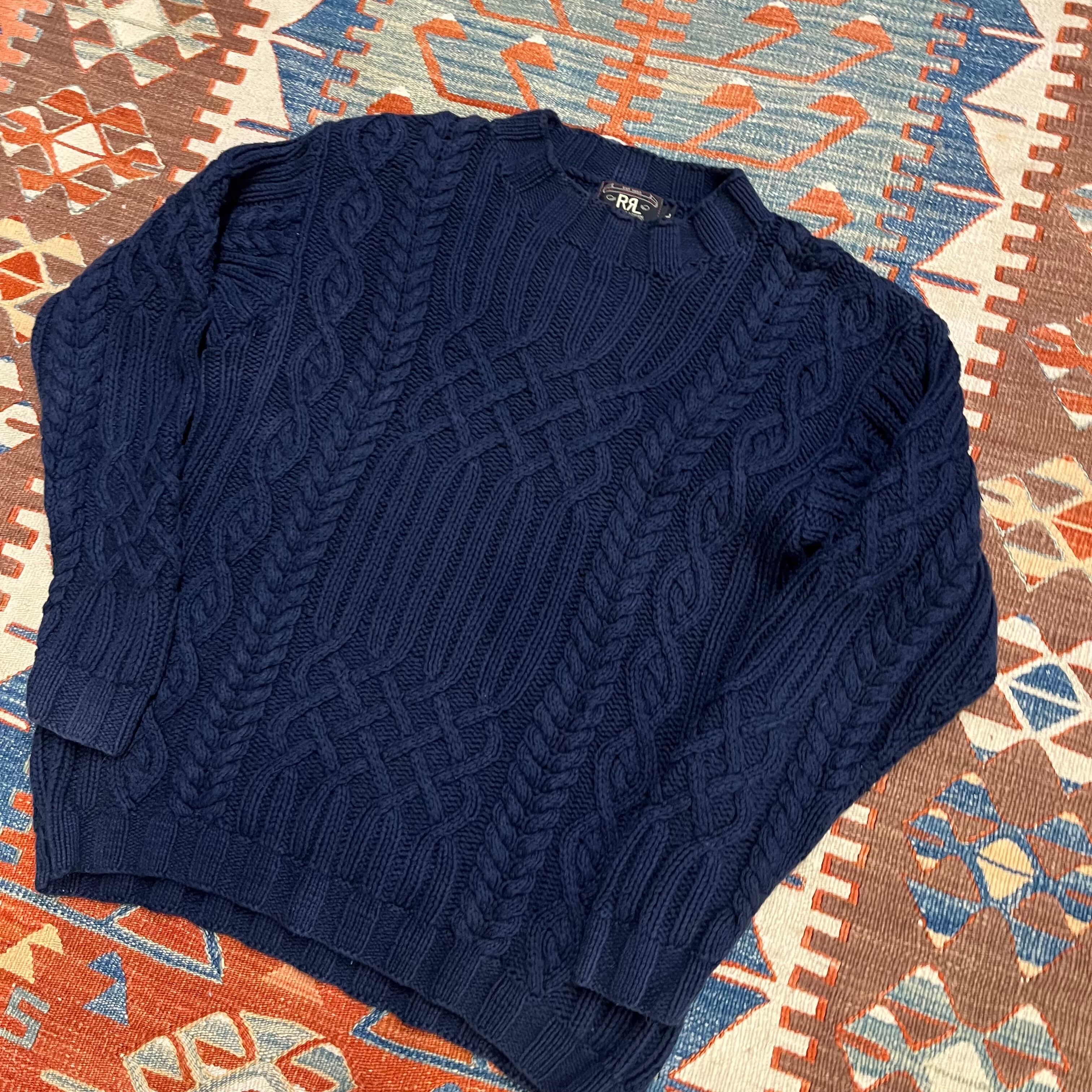 90s RRL ralph lauren ダブルアールエル ケーブルニット コットン ネイビー 三つ星タグ