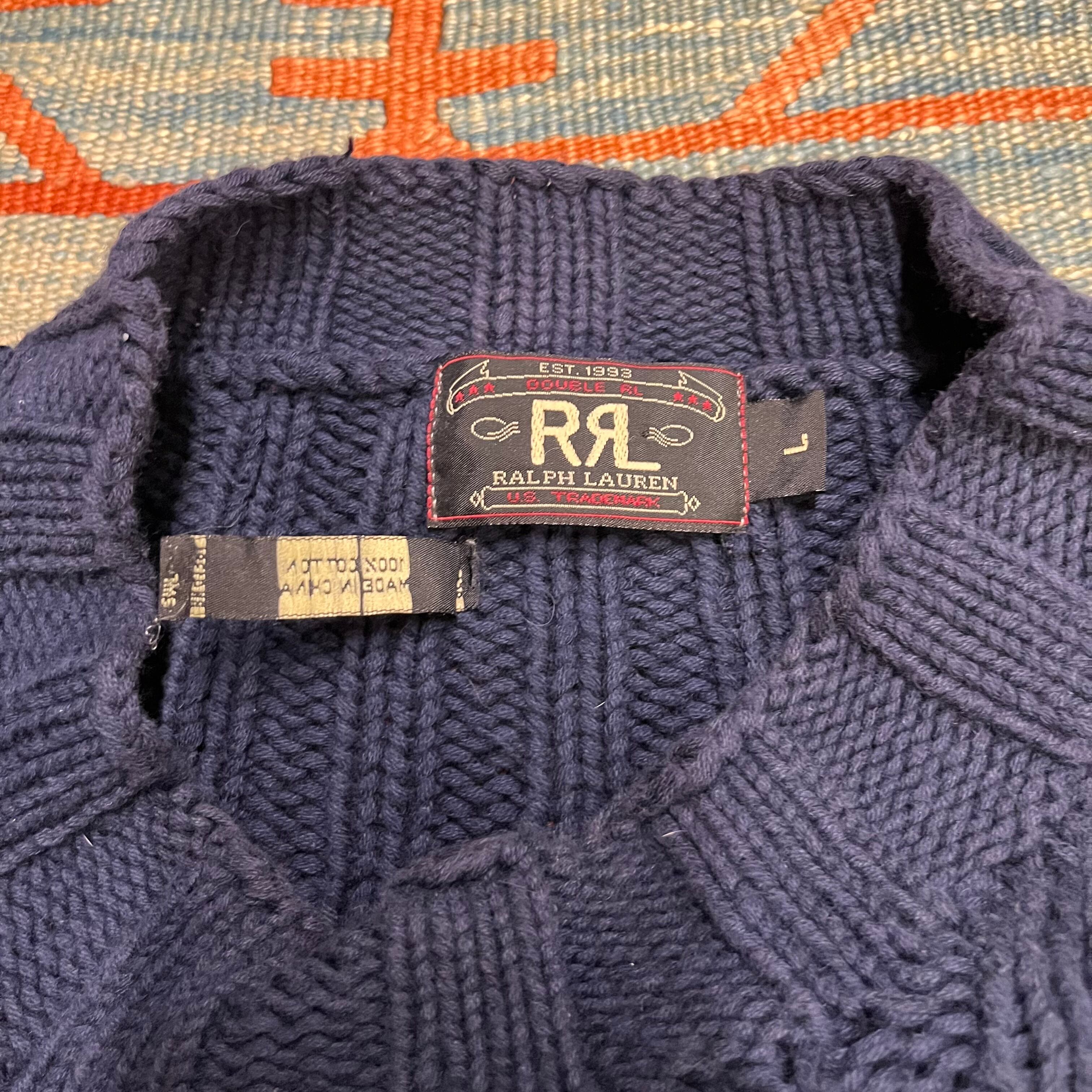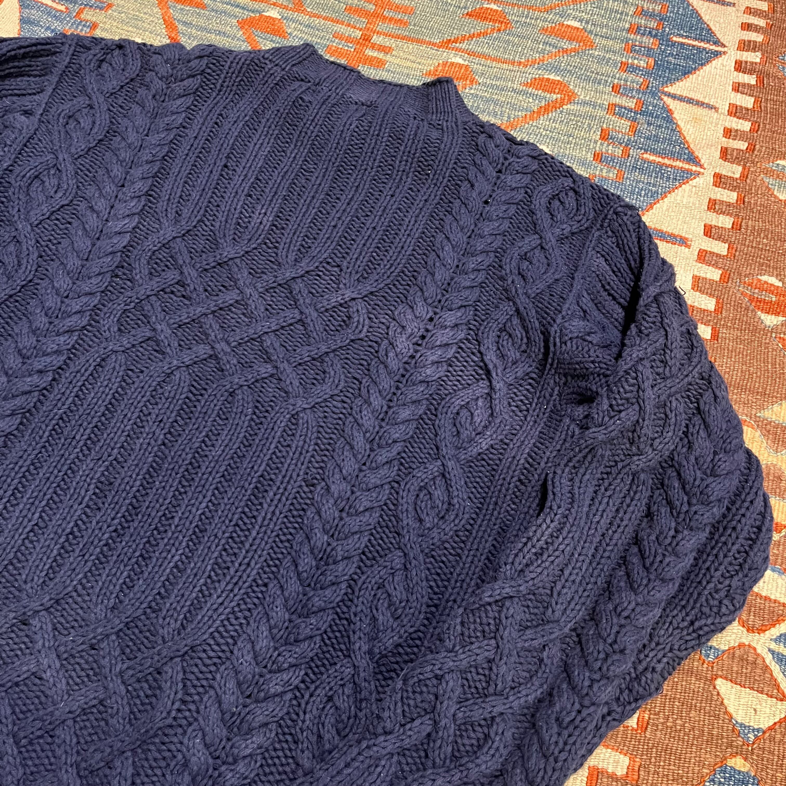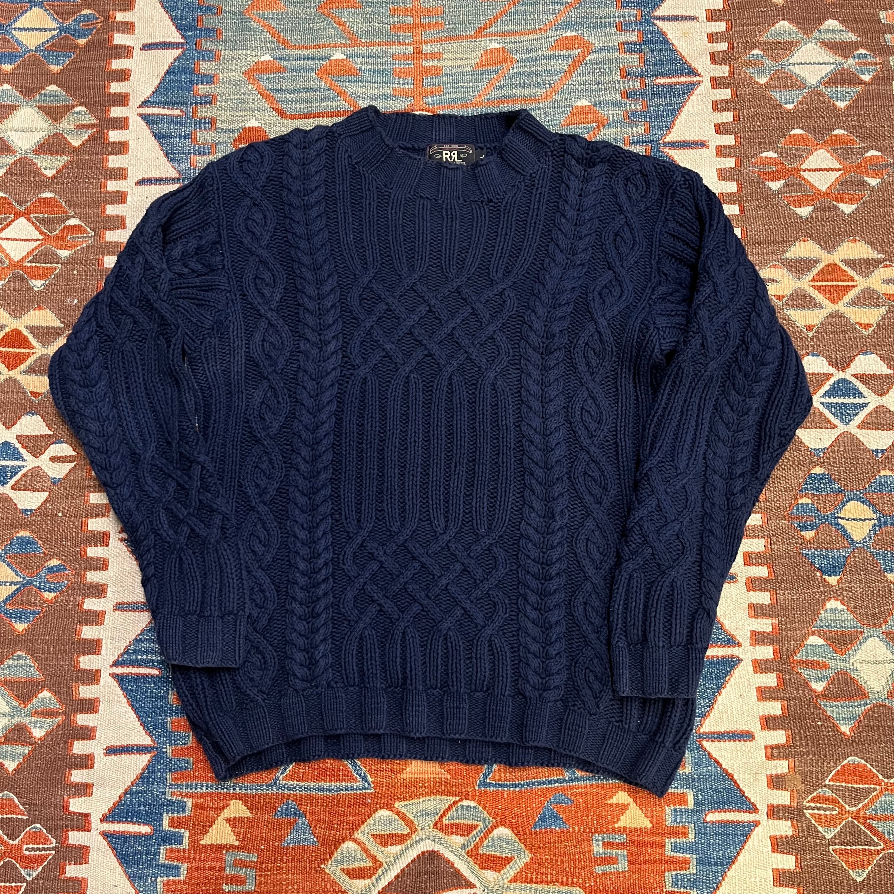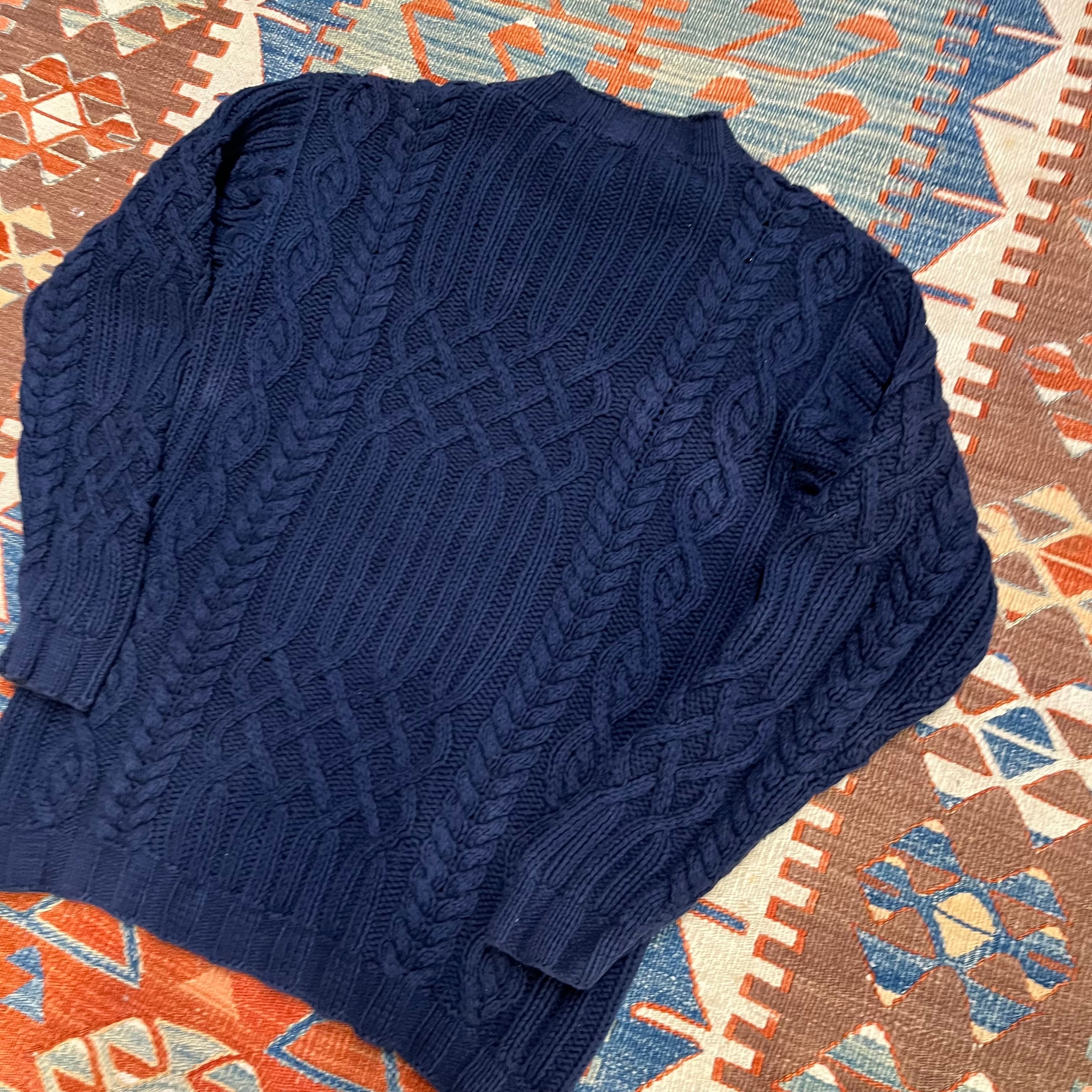 90s RRL ralph lauren ダブルアールエル ケーブルニット コットン ネイビー 三つ星タグ