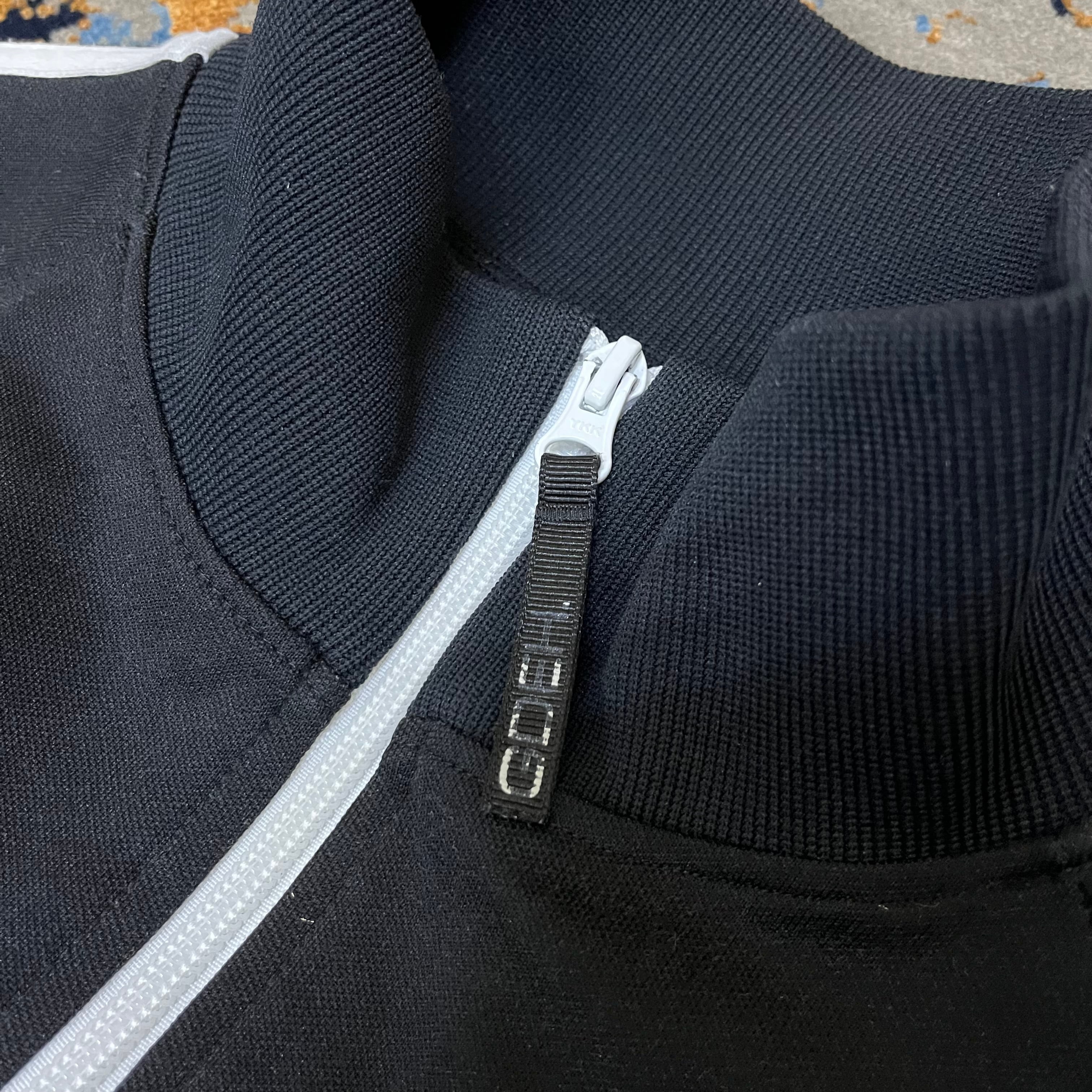 ジップにgdehと消えかかったますがロゴあり、裾にピスネーム。