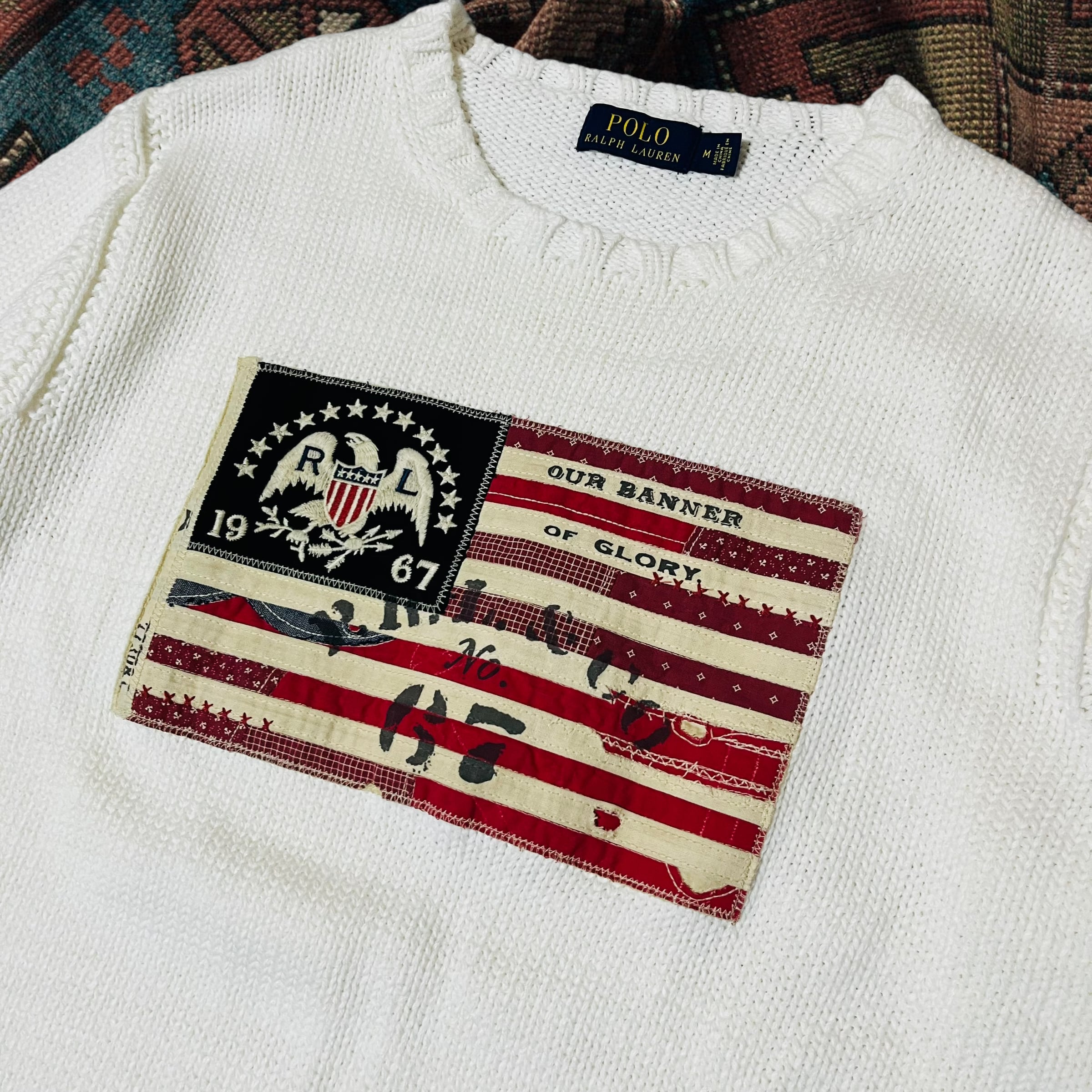 polo ralph lauren usa flag sweater ポロラルフローレン 星条旗 ニット ホワイト 加工