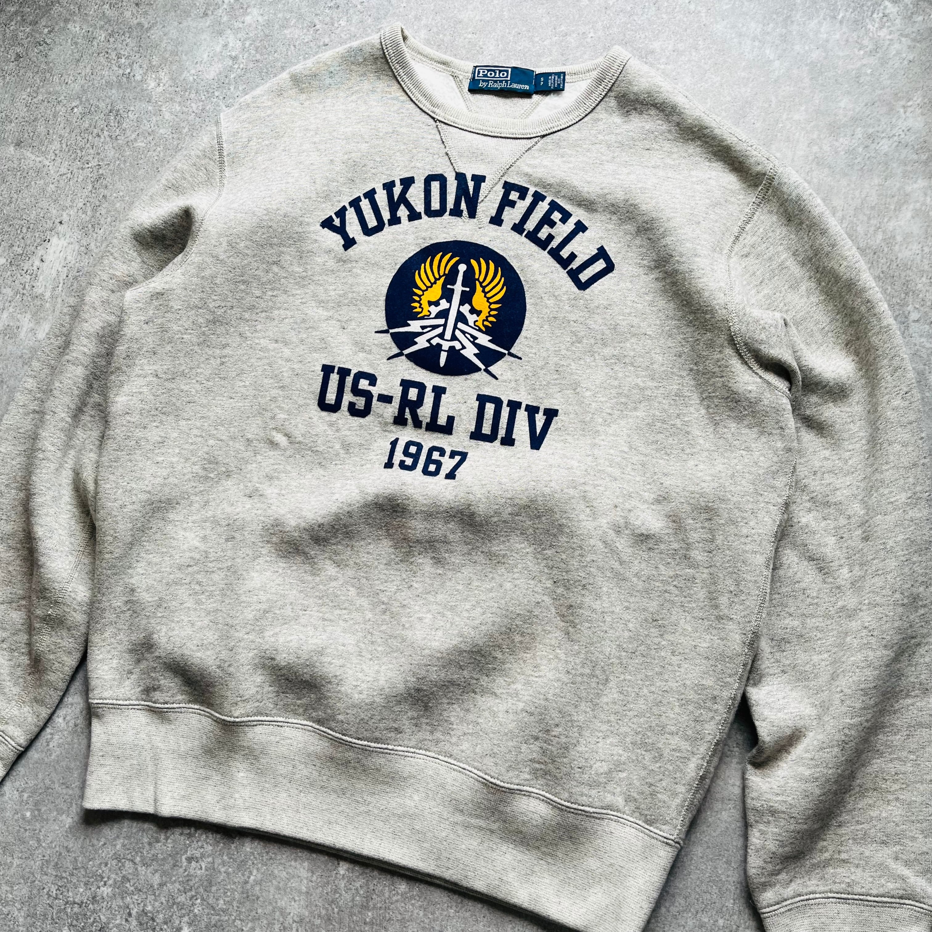 フロック加工の"Yukon Field"グラフィックと"US-RL Div 1967"プリント。